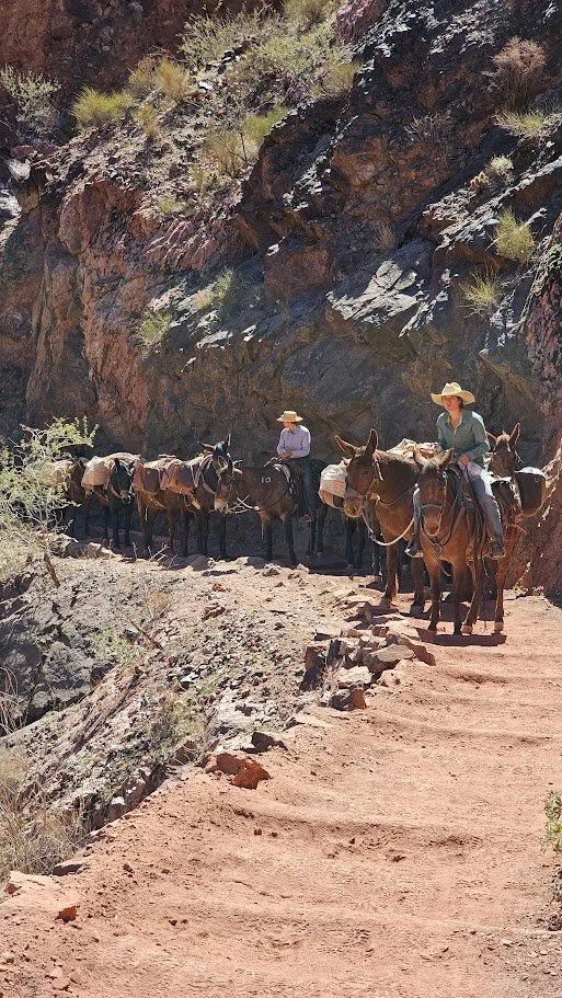 Mule train on its way up South Kaibab