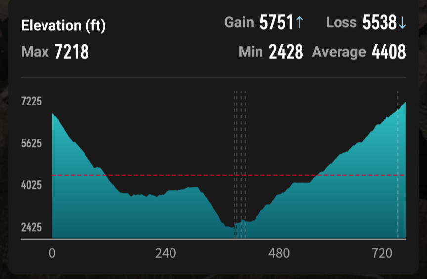 At the top, there were a few men worried about one of their running friends suffering from heat illness. This is incredibly common but not something to get complacent about. I highly recommend modifying plans on very hot days like we did. Although we had to start and end in the dark, and spend hours resting in between, we were able to stay happy and healthy.