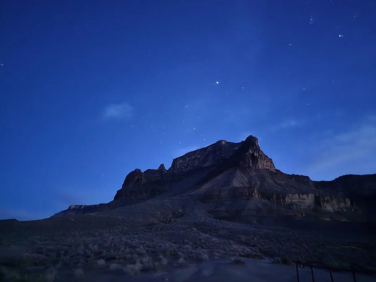 With a small crescent moon, it was quite dark for most of our ascent! The stars were beautiful, so we turned off headlamps to admire them during breaks. I was surprised by how windy it got after sunset with the thermals. The wind pushed a LOT of dust into our faces!